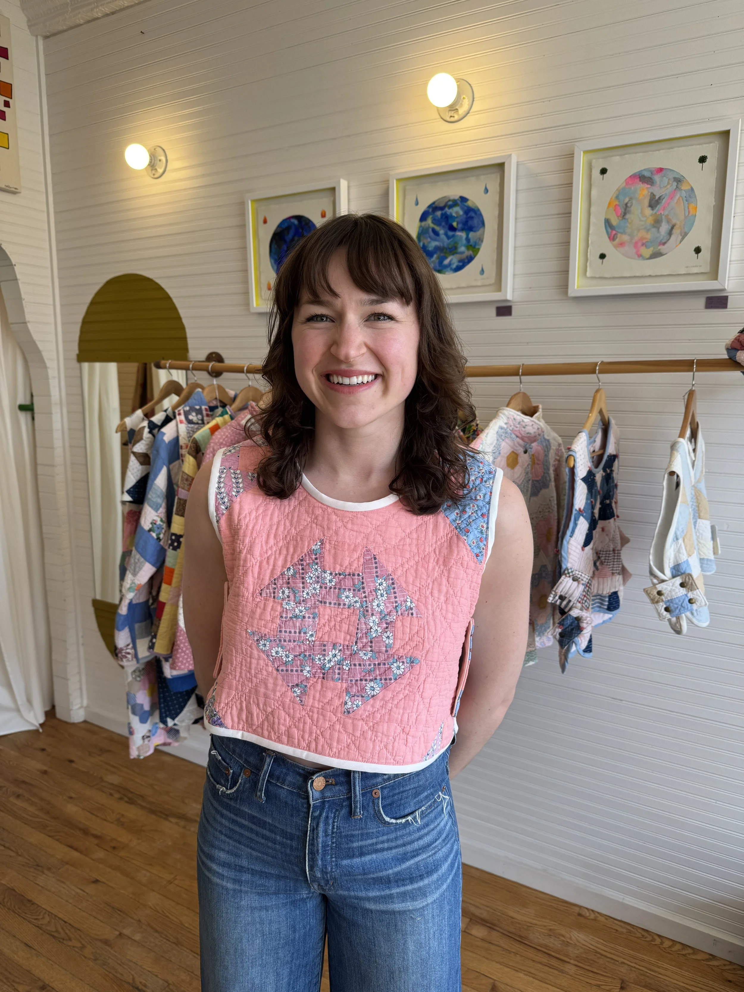 Quilt vests are heirloom pieces of wearable art that were handcrafted not once, but twice. For this reason quilt coats may show signs of wear, staining, or mended areas; these elements are not considered to be flaws, but representative of the quilt’s unique history and charm. Please be mindful when reviewing images before purchasing as these are one-of-kind-pieces and returns are not accepted.This coat has been prewashed. For details on further care, please reference our quilt coat care instructions.